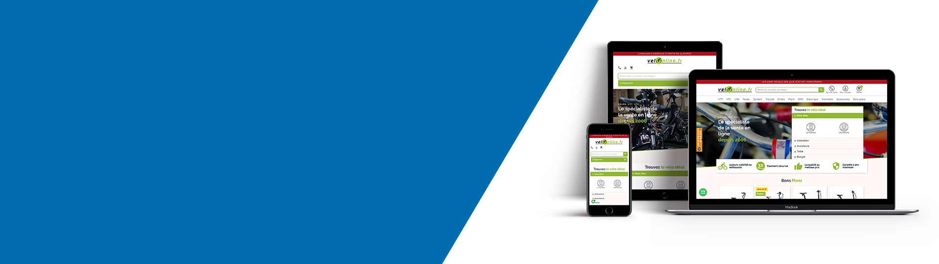 Véritable magasin de vélo en ligne, Velonline nous a confié la réalisation et l’animation de son site Prestashop. Velonline est devenu en quelques années, l’une des figures de proue de la vente en ligne de vélos pour toute la famille et tous les niveaux de pratique. Velonline propose aussi bien du vélo de route que du Fat Bike, du BMX, de la trottinette, de la draisienne, des tandems, des tricylces ou du vélo électrique. Parmi les marques phares, retrouvez Orbea, Orbita, Montana, ESX, ou encore Giro. De nombreux accessoires sont également en vente: casques, compteurs, pompes, remoques etc…